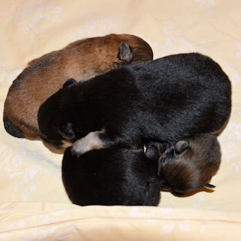 Links: Die Babys und Findelkind drei Tage alt. Rechts: Die beiden Buben drei Tage alt vom A-Wurf.