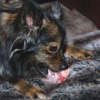 Eine leckere Zwischenmahlzeit (rohe Putenhälse zum Zähne putzen) wird immer gerne angenommen.