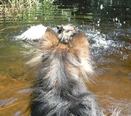 Schade, die Kamera war ein bißchen zu langsam, das war Arabella ihr erster Tauchgang, voller Stolz bringt sie das Stöckchen zurück.